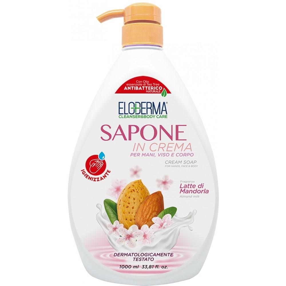 Tekuté mýdlo s mandlovým olejem italské řady ELODERMA. Rodinné balení o obsahu 1 l, praktické dávkování díky pumpičce.
