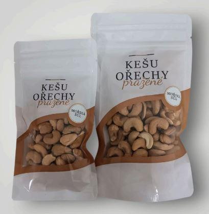 Kešu ořechy pražené solené mořskou solí, hmotnost 150 g. Původ ořechů: Uganda. (Foto bude upraveno, na obrázku 80g + 150g).