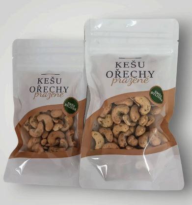 Kešu ořechy pražené solené s bylinkami, hmotnost 80 g. Původ ořechů: Uganda. (Foto bude upraveno, na obrázku 80g + 150g).