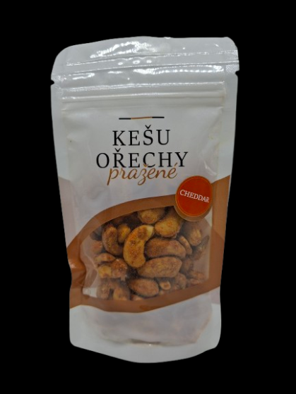 Kešu ořechy pražené solené dochucené cheddarem (čedarem).