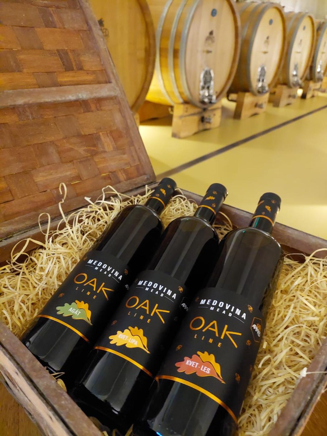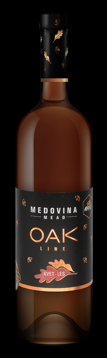 Medovina OAK LINE Květ-Les - je prémiová medovina zlato-žluté barvy vyrobená z květového a medovicového medu z limitované edice medovin dozrávaných 2 roky v 2000 litrových dubových sudech.