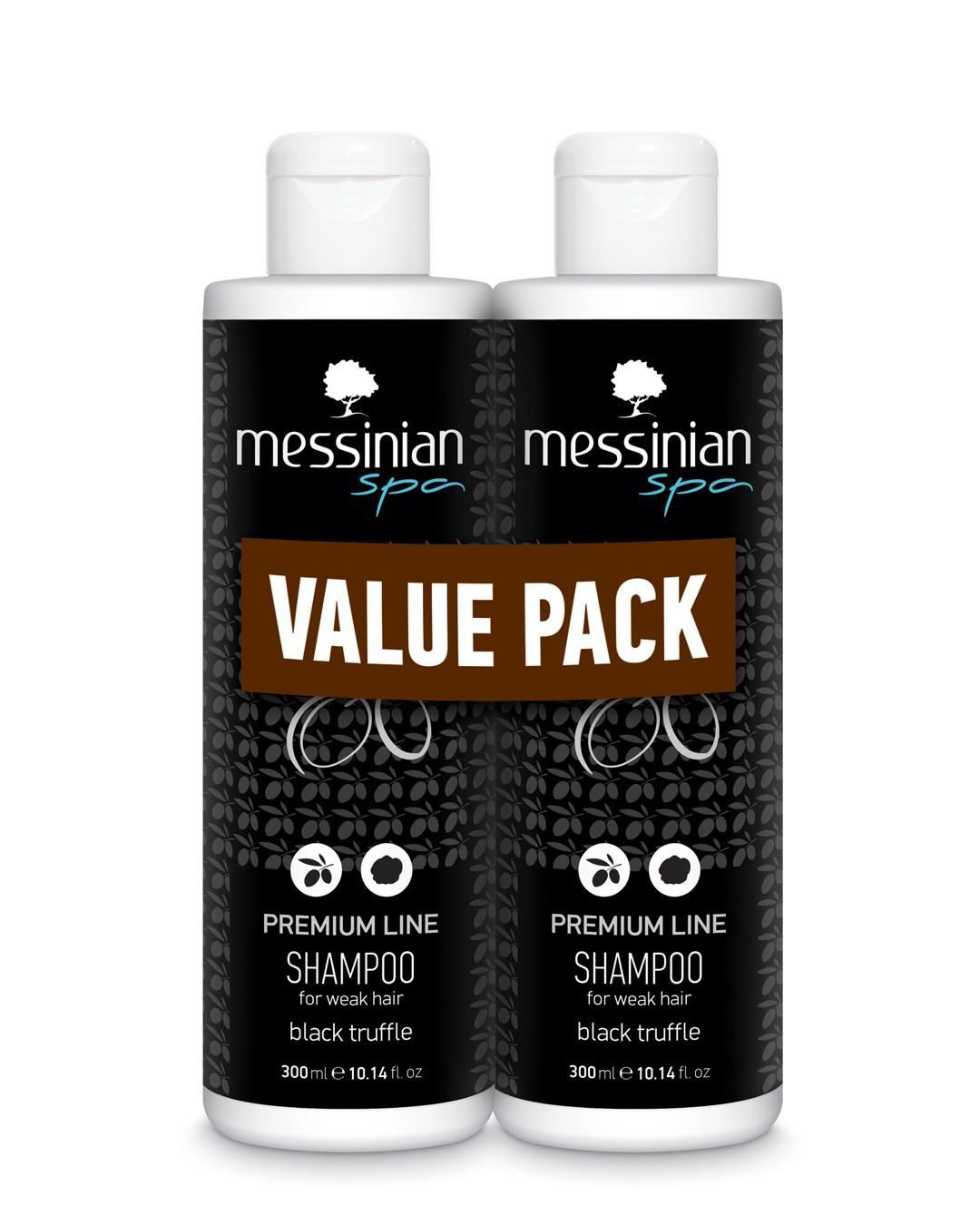 RODINNÉ BALENÍ - CENA ZA 2 KS. PLATÍ DO VYPRODÁNÍ ZÁSOB! Messinian Spa Šampón pro oslabené vlasy s černým lanýžem 300 ml.