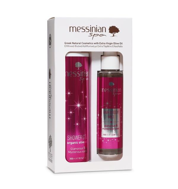 DÁRKOVÝ SET tajemná & okouzlující vůně obsahuje sprchový gel 300 ml a vlasový & tělový sprej 100 ml. K zakoupenému setu dostanete ZDARMA papírovou tašku s logem MESSINIAN SPA.