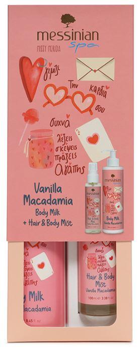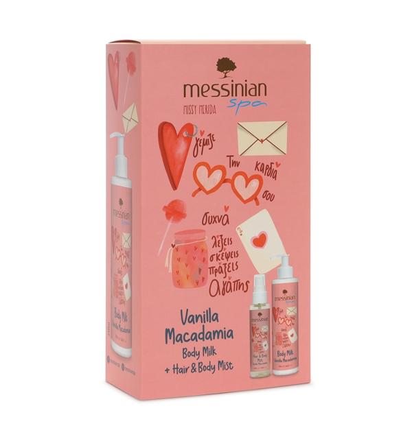 DÁRKOVÝ SET Missy Merida vanilka & makadamový ořech obsahuje tělové mléko 250 ml a vlasový a tělový sprej 100 ml. K zakoupenému setu dostanete ZDARMA papírovou tašku s logem MESSINIAN SPA.