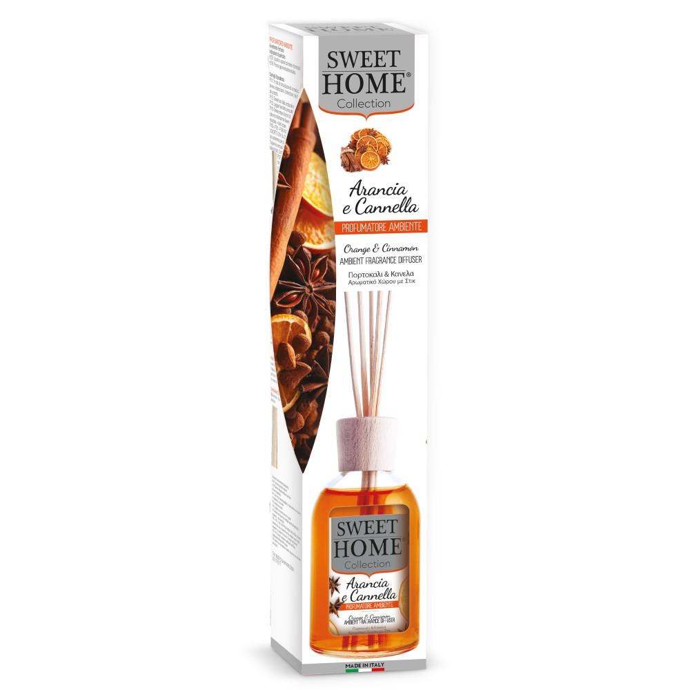 Aroma difuzér s tyčinkami italské řady Sweet Home. Užijte si vůni pomeranče a skořice nejen o Vánocích. Vhodné k provonění menších prostor (do 10 m2).