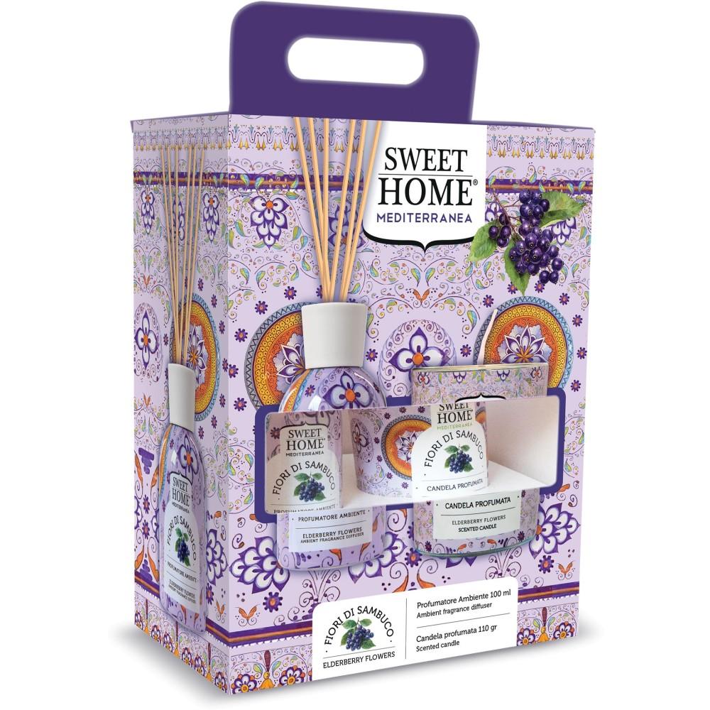 Dárkový set Aroma difuzér s tyčinkami a vonná svíčka ve skle italské řady Sweet Home. Jemná, svěží a lehce nasládlá vůně rozkvetlého černého bezu. Vhodné k provonění menších prostor (do 10 m2).