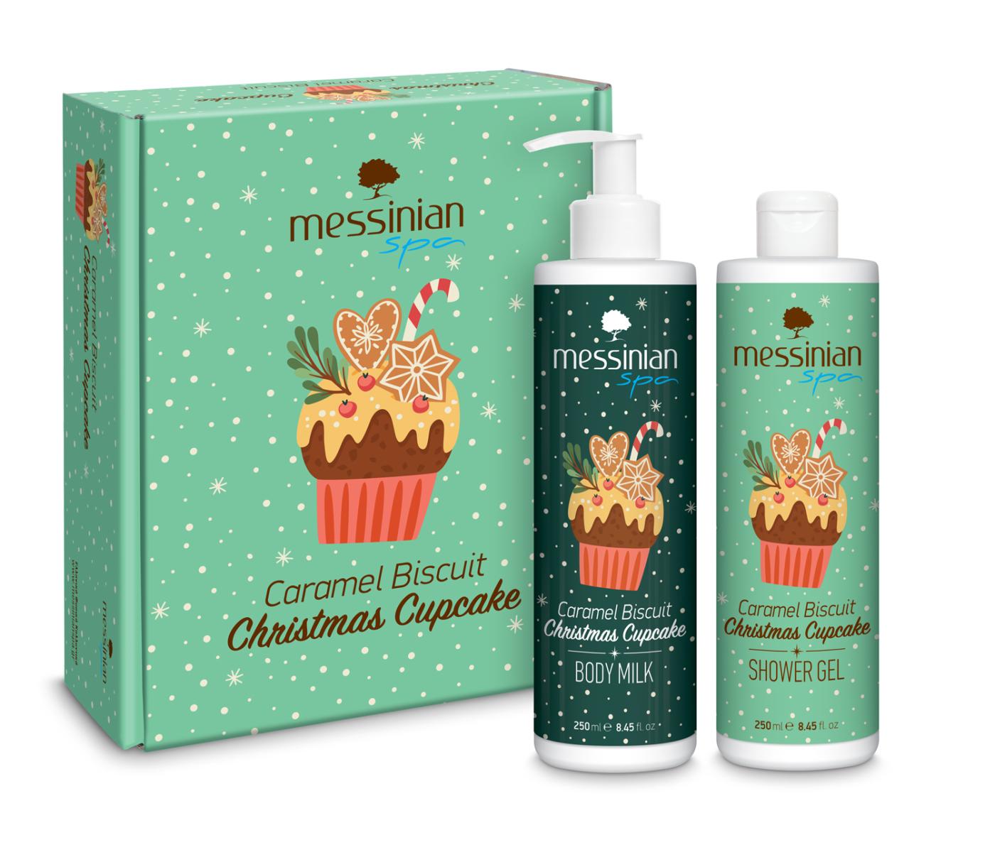 Messinian Spa dárkový set vánoční cupcake s vůní karamelových sušenek obsahuje sprchový gel 250 ml a tělové mléko 250 ml. K zakoupenému setu dostanete ZDARMA papírovou tašku s logem MESSINIAN SPA.